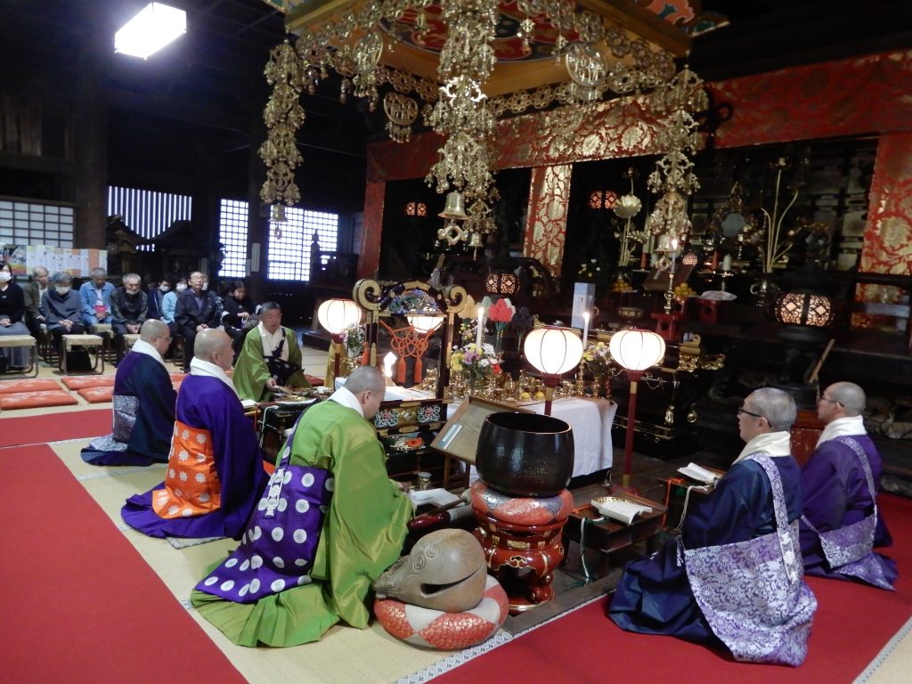 精霊送りの法要である不断経会を15日に厳修いたしました。当日は午後1時より午後5時までの間、参拝者の方々と共に観音経を読誦しました。