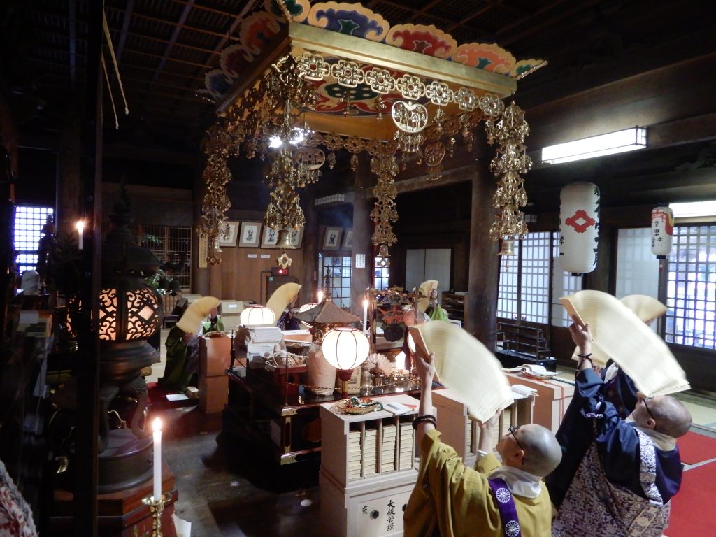 朝6時よりの開帳法要、昼1時半よりの月例法要、3時20分よりの閉帳法要は、何れも当山管長の逸木盛俊猊下ご導師のもと、僧侶や参拝者の方々が「観音経」をお唱えいたしました。