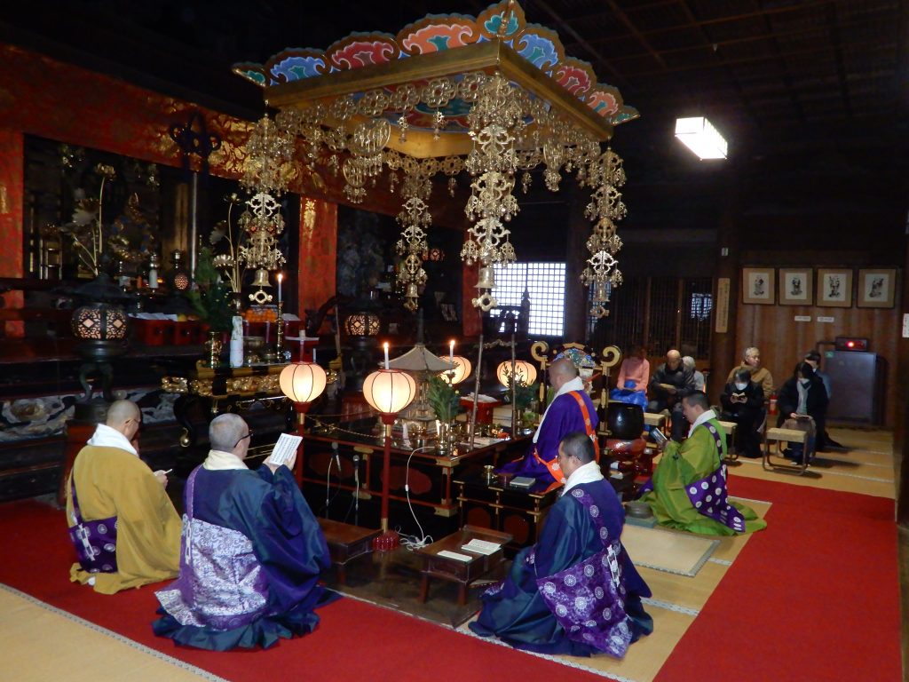 令和7年12月31日午後11時55分より、当山管長御導師のもと、旧年の悪習を正し、その年の吉祥を祈願する法要~修正会(しゅしょうえ)~を厳修いたしました。