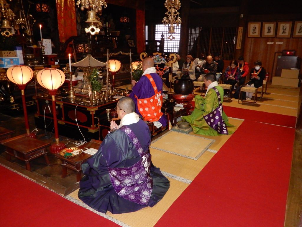 令和7年12月31日午後11時55分より、当山管長御導師のもと、旧年の悪習を正し、その年の吉祥を祈願する法要~修正会(しゅしょうえ)~を厳修いたしました。